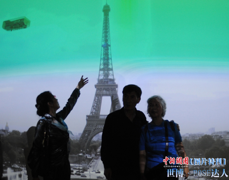 逛世博一定會(huì)拍照留念,擺一個(gè)漂亮有創(chuàng)意的pose尤為重要。面對(duì)著鏡頭,挺胸收腹翹臀,一個(gè)微笑,一個(gè)手勢,秀出自己的活力。心中一定要默念:“我留下的不是照片,是心情!”圖為中國游客擺出高難度pose,想和法國館的“埃菲爾鐵塔”比高。中新社發(fā) 廖攀 攝