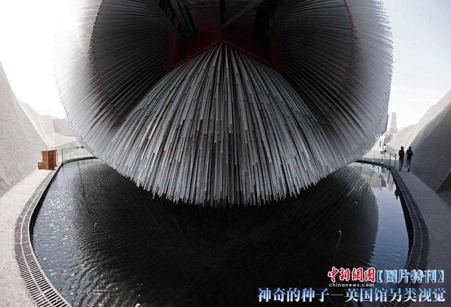 上海世博園開(kāi)園才數(shù)日,自號(hào)“種子圣殿”的英國(guó)館已成人氣最旺場(chǎng)館之一。該館由6萬(wàn)根亞克力桿巧妙構(gòu)成,隨風(fēng)搖動(dòng),頗為新奇。其每根桿子里都含有植物種子。中新社記者 盛佳鵬 攝