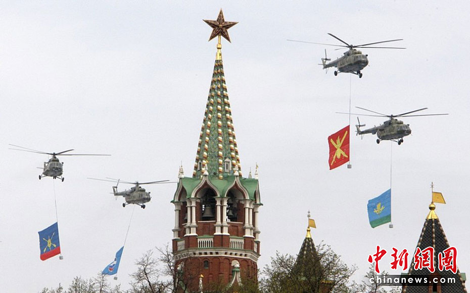 當地時間5月4日,在俄羅斯首都莫斯科,參加彩排的戰機編隊飛過紅場上空。俄羅斯將于5月9日隆重紀念衛國戰爭勝利65周年。圖片來源:中國新聞網