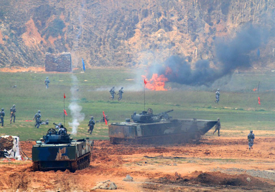 5月5日,海軍陸戰(zhàn)隊在訓(xùn)練場進行登陸作戰(zhàn)實兵實彈演練。圖片來源:新華網(wǎng) 查春明攝
