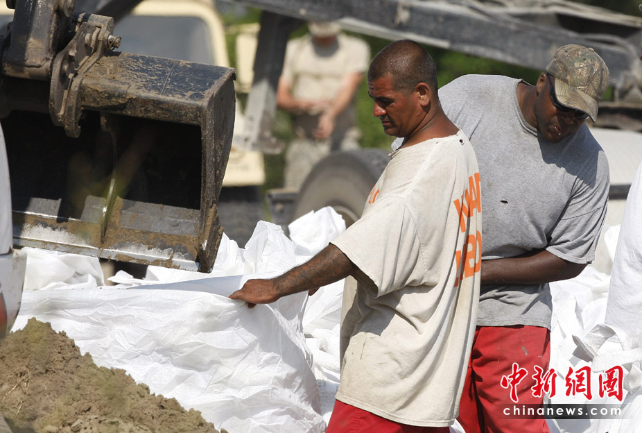 沙袋“筑堤”阻原油