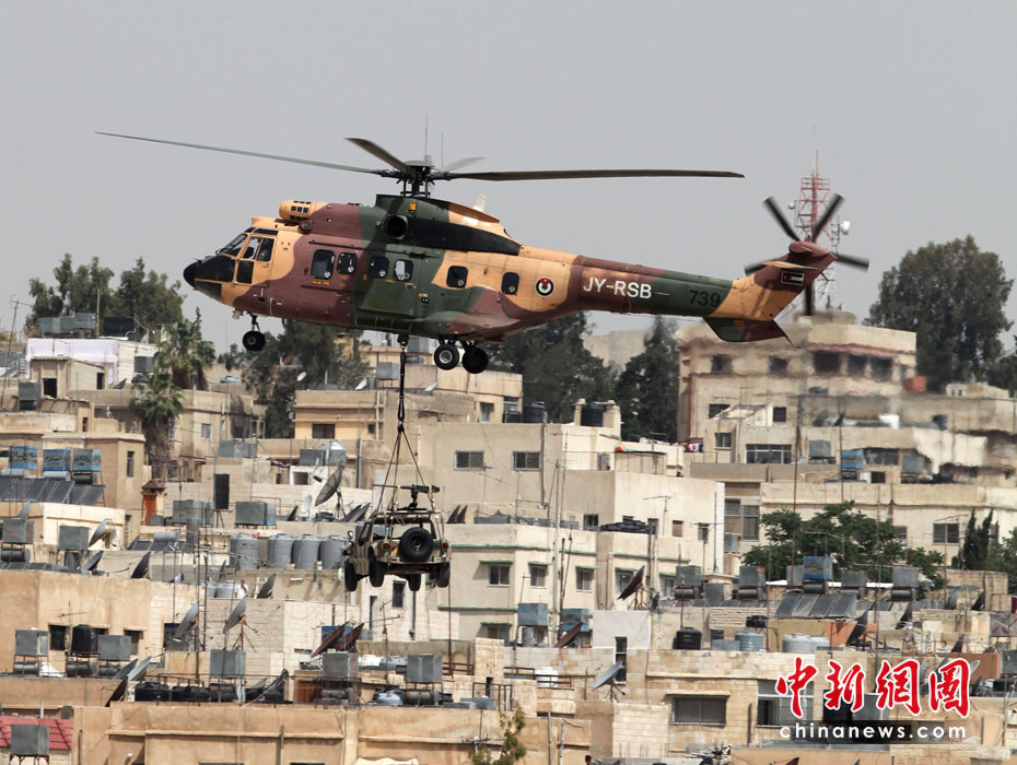 5月11日,約旦特種部隊(duì)在安曼空軍基地附近舉行演習(xí),為特種作戰(zhàn)部隊(duì)展覽會(huì)(SOFEX)開幕式助興。該展覽會(huì)為期4天,展覽主題包括國家安全及反恐措施。圖片來源:中國新聞網(wǎng)