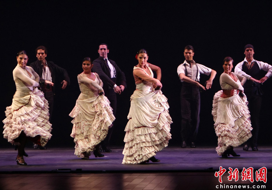 5月13日晚,作為西班牙文化標(biāo)志的弗拉門戈舞亮相上海世博會。為了讓中國游客進一步了解西班牙文化,西班牙館專門邀請西班牙最高水準(zhǔn)的國家芭蕾舞團來上海獻(xiàn)演弗拉門戈舞。舞蹈團本次帶來的節(jié)目極具原創(chuàng)性,之前從未在中國上演過。中新社記者 杜洋 攝