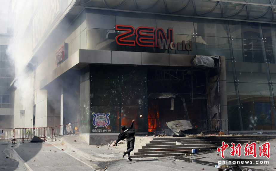泰國軍方19日清場,希望將陷入內戰邊緣的曼谷拯救出來,雖然紅衫軍節節敗退,但有激進分子未肯罷休,四處放火,電視臺、股票交易所、電力公司、幾間銀行、商場戲院都遭殃,商場和便利店亦成為搶掠目標。據報曼谷有27處地方起火,泰國最大的商場Central World、Siam Square和Siam Paragon三大購物中心被縱火,其中Central World燒通頂,據報快將倒塌。