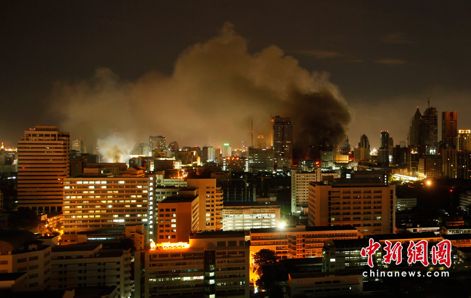 泰國軍方19日清場,希望將陷入內(nèi)戰(zhàn)邊緣的曼谷拯救出來,雖然紅衫軍節(jié)節(jié)敗退,但有激進(jìn)分子未肯罷休,四處放火,電視臺、股票交易所、電力公司、幾間銀行、商場戲院都遭殃,商場和便利店亦成為搶掠目標(biāo)。據(jù)報(bào)曼谷有27處地方起火,泰國最大的商場Central World、Siam Square和Siam Paragon三大購物中心被縱火,其中Central World燒通頂,據(jù)報(bào)快將倒塌。