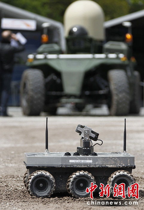 當(dāng)?shù)貢r間5月18日,德國南部哈默爾堡舉行了歐洲軍用機器人大賽。歐洲各國軍用機器人在大賽上一展身手。圖片來源:中國新聞網(wǎng)