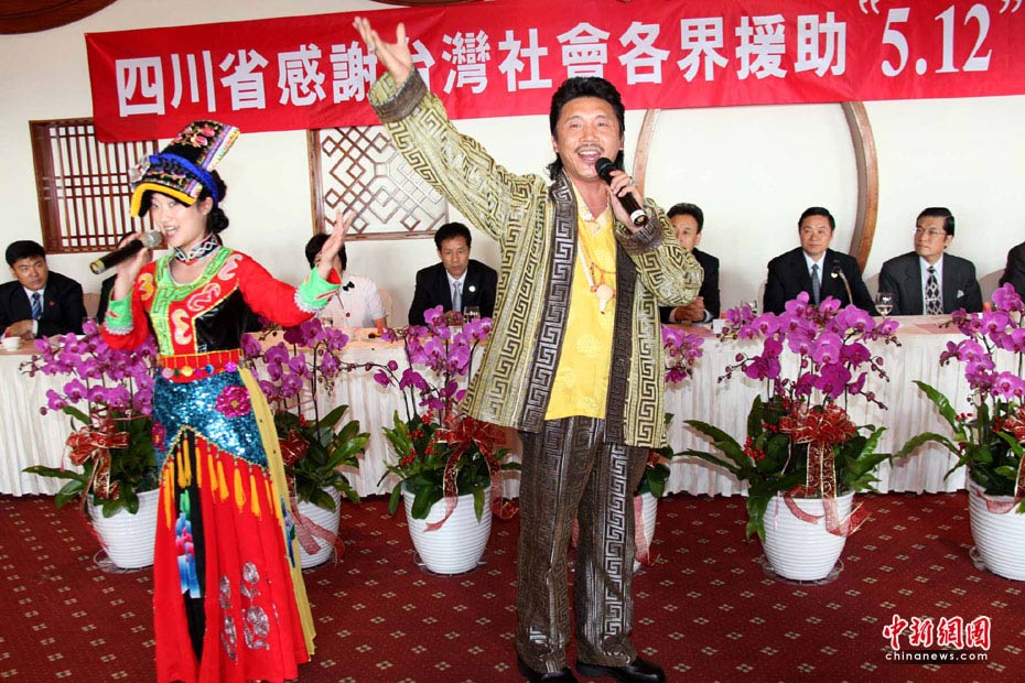 5月24日下午,“四川省感謝臺灣社會各界援助‘5.12’地震災區見面會”在臺北舉行,2名四川名歌手獻唱,感謝臺灣同胞的大愛。 中新網記者董會峰攝