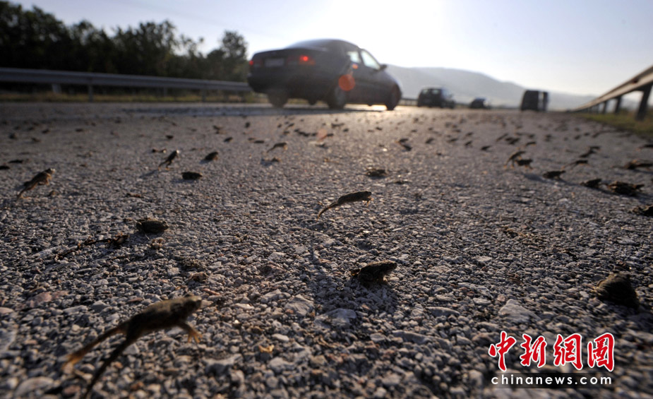 26日,希臘東北部地區的一條高速公路遭數百萬只青蛙“占據”而被迫關閉了兩個小時。希臘環保部門表示,這些青蛙可能只是在前往附近小湖找食物過程中“碰巧路過”高速公路。