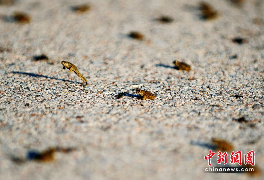 26日,希臘東北部地區(qū)的一條高速公路遭數(shù)百萬(wàn)只青蛙“占據(jù)”而被迫關(guān)閉了兩個(gè)小時(shí)。希臘環(huán)保部門表示,這些青蛙可能只是在前往附近小湖找食物過(guò)程中“碰巧路過(guò)”高速公路。