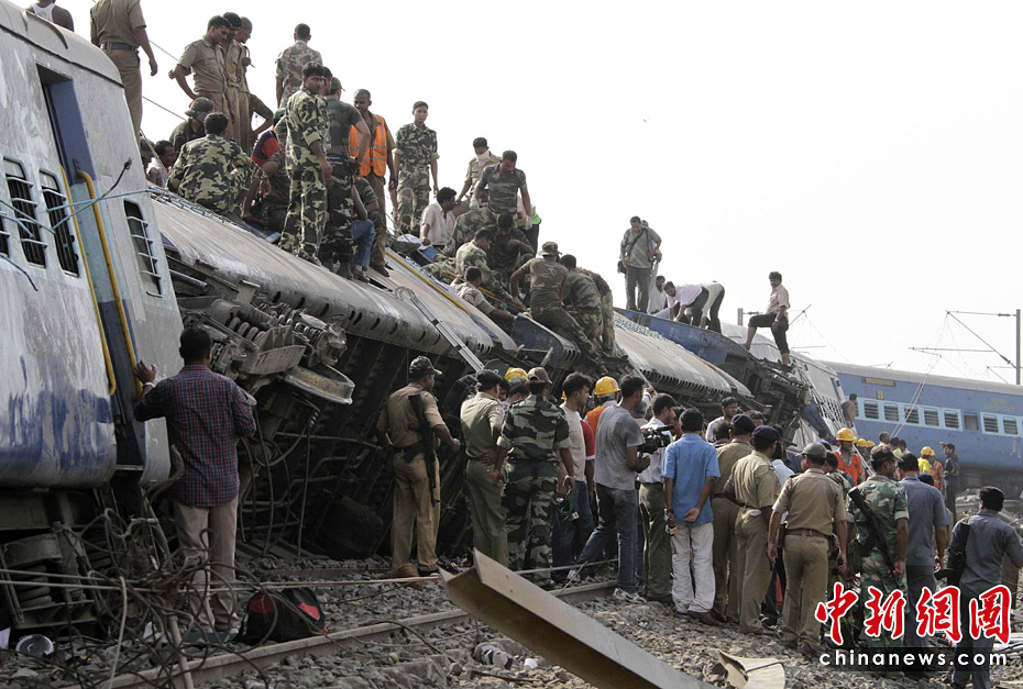 當(dāng)?shù)貢r(shí)間5月28日,印度一列特快列車在東部西孟加拉邦的西米德納布爾遭反政府武裝襲擊脫軌,造成百余人死傷。圖片來源:中國新聞網(wǎng)