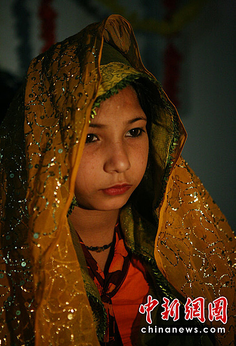 盡管在巴基斯坦童養媳是違法的,但這也是一個普遍存在的現象。近日,26歲的Shahir與12歲的Nasrin結為夫妻。Nasrin的爸爸是在兩年前去世的。因為經濟困難,Nasrin被迫出嫁。圖片來源:CFP