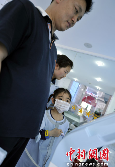 圖為孩子在體驗做一名護士,為家人體檢。 中新網記者 王紅綱 攝