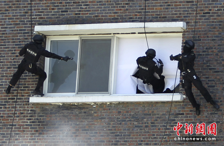 2010年6月1日,在韓國首爾,首爾防衛(wèi)部隊進行了大型反恐軍事演練。