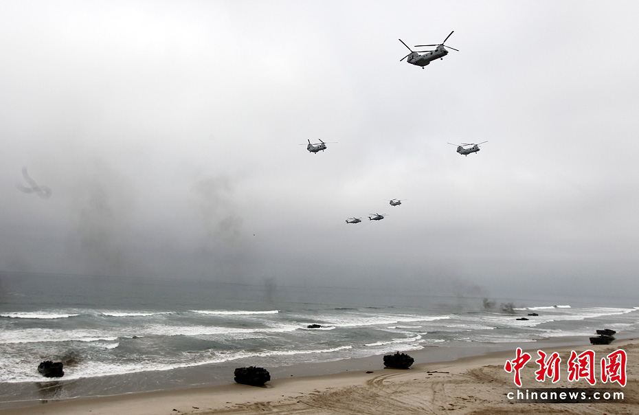 當地時間6月4日,約5000名水兵和陸戰隊員在美國加利福尼亞州舉行了代號為“黎明突擊”的搶灘登陸軍事演習。圖片來源:中國新聞網