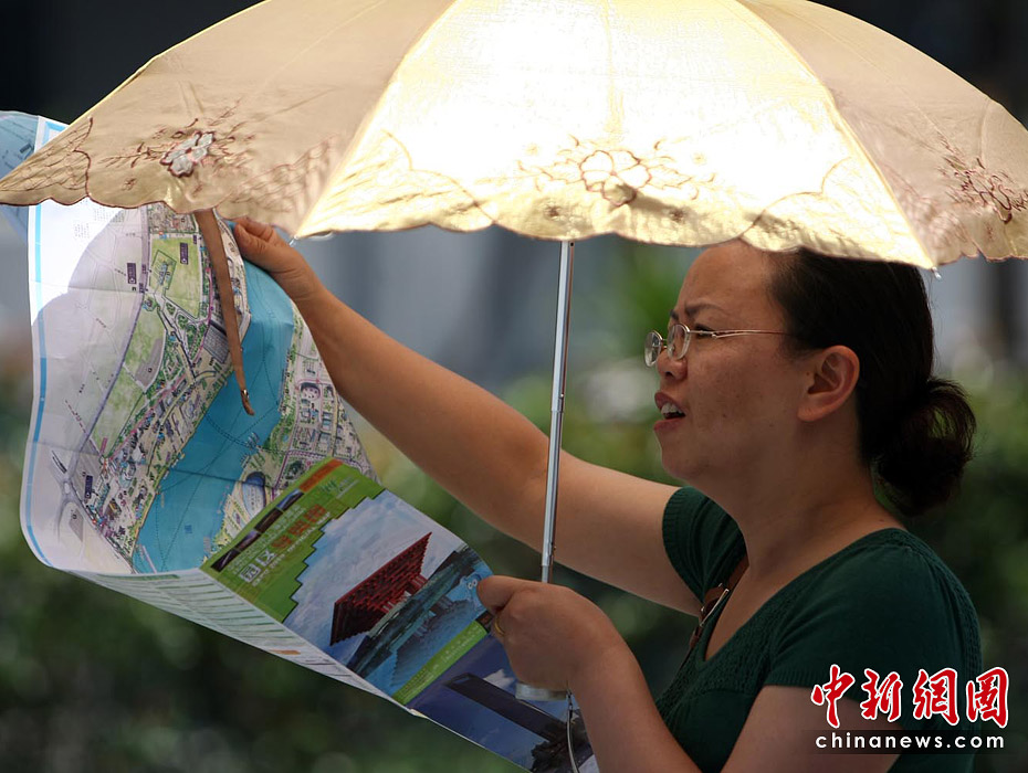 截至6月5日19點30分,上海世博會累計參觀者已超過1000萬人次。據悉,上海世博會的規劃用地為5.28平方公里,約242個國家和國際組織參展分布在浦東和浦西兩大區域。要想在這么大的地方找到自己想去的地方,那么世博地圖就是必須的裝備。圖為上海世博園內游客正在地圖上尋找自己要去的地方。中新社記者 杜洋 攝