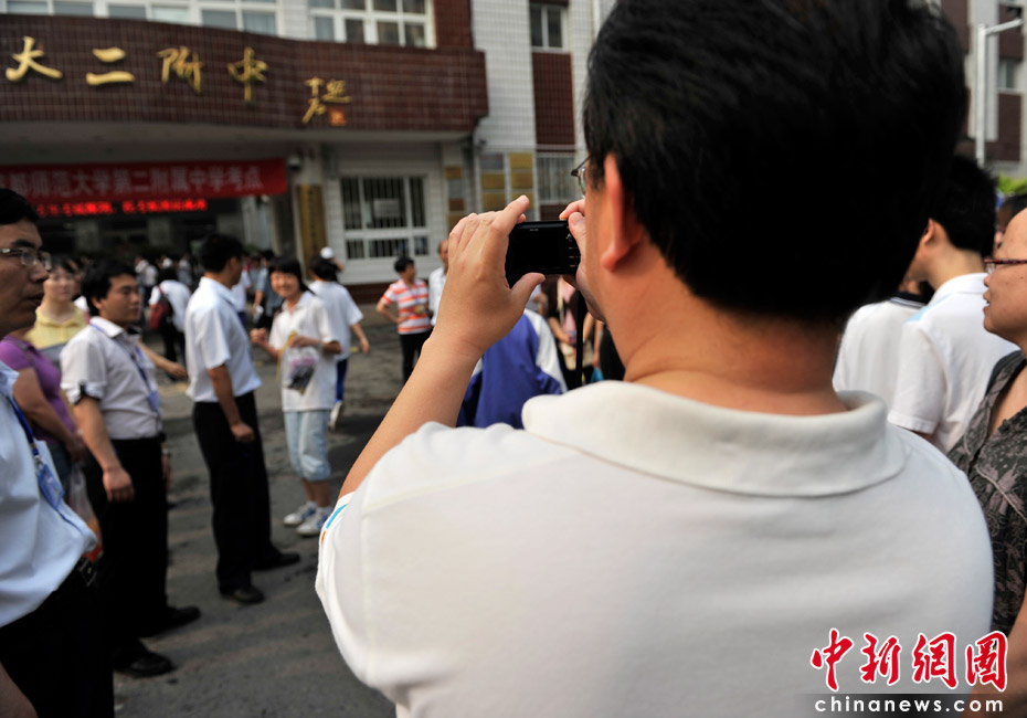 2010年全國高考6月7日日拉開大幕,957萬考生走進考場。由于報名人數(shù)減少,而招生計劃增加,教育部預計今年全國高考平均錄取率將會增加近7%。圖為首都師范大學第二附屬中學考點。中新網(wǎng)記者 金碩 攝