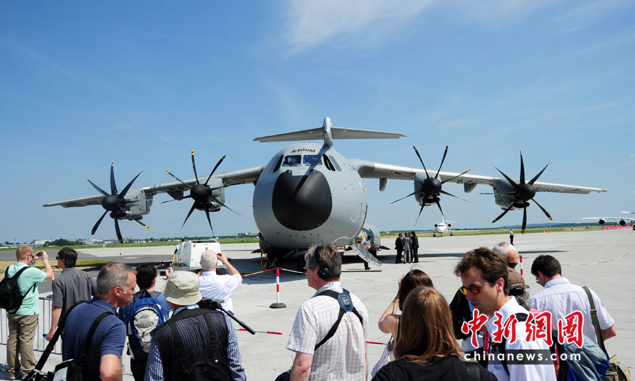 6月8日,德國柏林,一架空中客車A400M軍用運輸機在2010年柏林國際航空展上試飛。