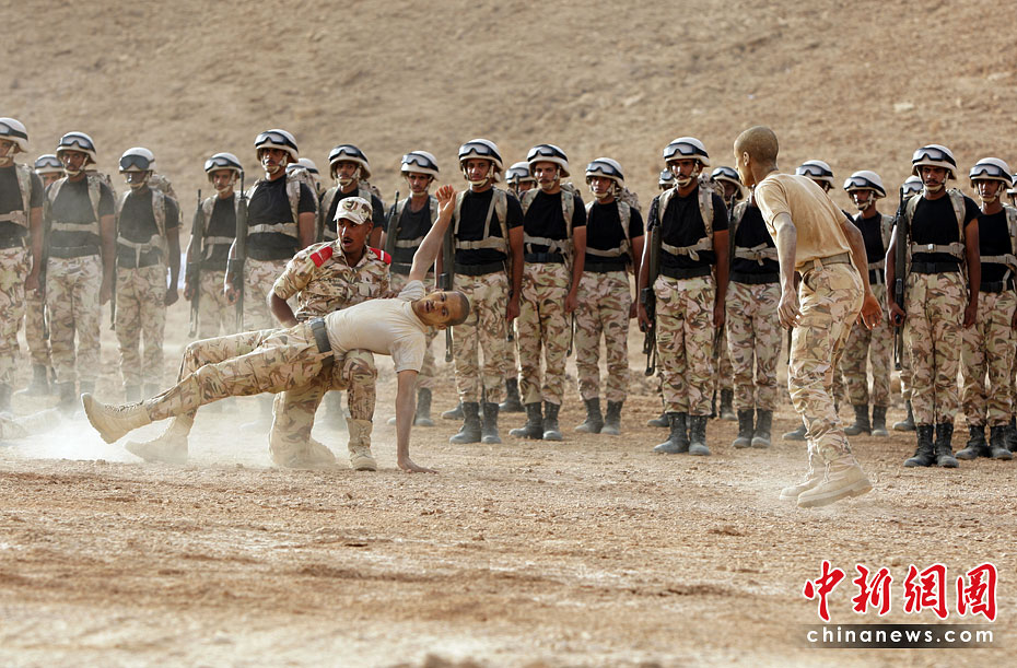 當?shù)貢r間6月9日,在沙特阿拉伯的利雅得,沙特特種兵學員在畢業(yè)表演中展示所學技能。圖片來源:中國新聞網(wǎng)