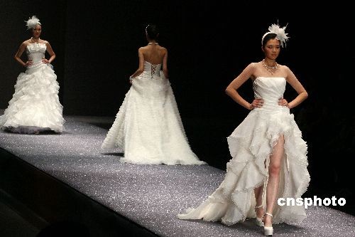 2008年11月7日,中國國際時裝周(2009春夏)舉行“名瑞杯”2008中國婚紗設計大賽(Famory Cup China Wedding Dress Design Contest 2008)。共有來自14個地區的25份稿件入圍了最后的決賽,角逐此次大賽的各個獎項。經典的白紗和今年非常流行的蕾絲面料是主角,選手們用了層疊,堆積的表現手法,使得并不新穎的面料有了新鮮的感覺,給人們造成不同的,特別的視覺效果。自由設計師吳小珍的作品《女人花》最終獲得金獎。中新社發 魯谷 攝