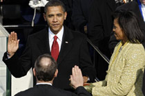 美國東部時間1月20日上午12點05分(北京時間21日凌晨1點05分)。四十七歲的奧巴馬在華盛頓國會山宣誓就職。美國建國二百三十二年來,第一次迎來了一位非洲裔總統。 【專題】