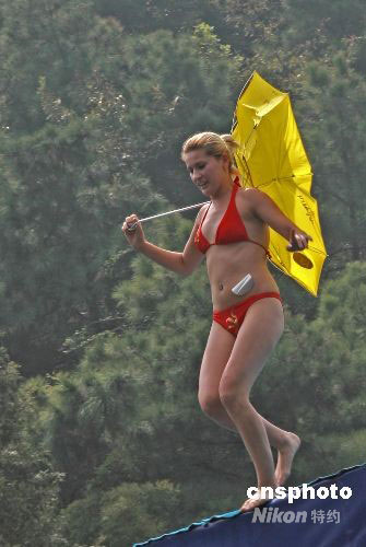 10月1日,第三屆全國鳥人飛行大賽在湖南長沙石燕湖景區(qū)舉行,三十余名“鳥人”在此展開角逐。鳥人飛行大賽純屬一項搞笑的娛樂運動,參賽選手沒有任何限制條件,他們的飛行裝置千奇百怪,有抱著火炬“飛”的,有抓著飛機模型“飛”的,甚至有把雨傘當(dāng)飛行器的……中新社發(fā) 張家根 攝