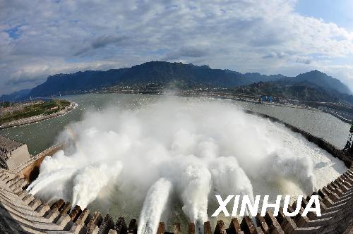11月7日,江水通過三峽泄洪大壩下泄。當日,三峽工地久雨初晴,三峽工程開啟多個泄洪深孔及溢流表孔泄洪。從10月23日開始,長江上游持續降雨,局部地區出現暴雨天氣,長江三峽出現冬汛。新華社記者 安希雅 攝