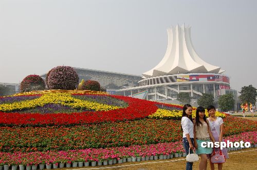 十月二十六日,廣西南寧國際會展中心花團錦簇,迎接即將于十月二十八日至三十一日舉行的第四屆中國—東盟博覽會和中國—東盟商務與投資峰會以及二〇〇七年南寧國際民歌藝術節。中新社發 劉萬強 攝