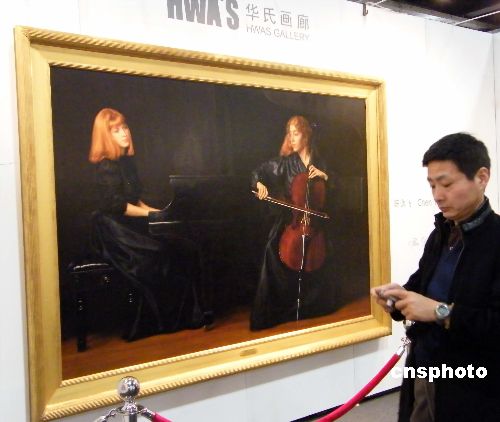 2007年11月15日,上海藝術博覽會在滬開幕。華氏畫廊帶來的陳逸飛代表作《二重奏》,再度引起國內(nèi)外機構(gòu)的收藏興趣。這是陳逸飛所有音樂題材肖像畫中尺幅最大的作品,其擁有方表示,這幅畫只展覽,不出售。 中新社發(fā) 井韋 攝