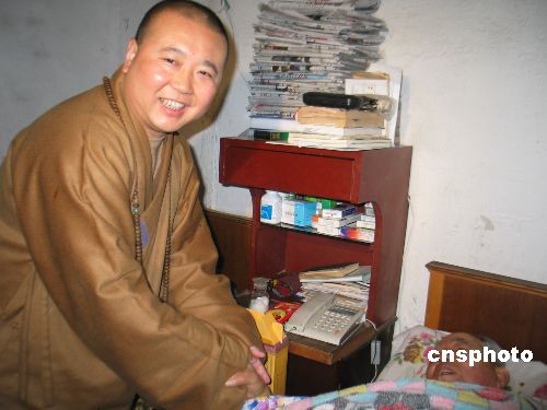 圖:春節(jié)前上海玉佛寺僧職人員探望特困居民