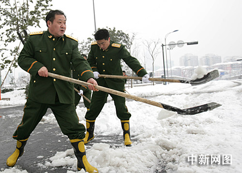 圖:杭州消防官兵積極抗擊雪災(zāi)
