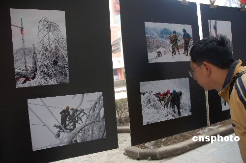 圖:貴州凱里舉辦“萬眾一心抗雪凝”攝影展
