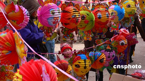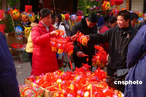 2月13日,人們?cè)诤幽祥_(kāi)封市大相國(guó)寺市場(chǎng)選購(gòu)花燈。農(nóng)歷正月十五臨近,古城開(kāi)封市各種生肖動(dòng)物、奧運(yùn)福娃等圖形的燈籠紛紛上市,喜迎元宵佳節(jié)。中新社發(fā) 凱楓 攝