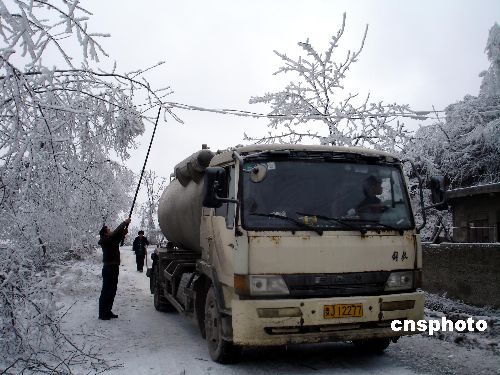 1月14日以來,貴州出現50年罕見的雪凝天氣。截至2月14日,當地冰凍氣候依舊持續,這給搶險救災帶來困難。中新社發 易勝武 攝