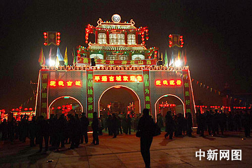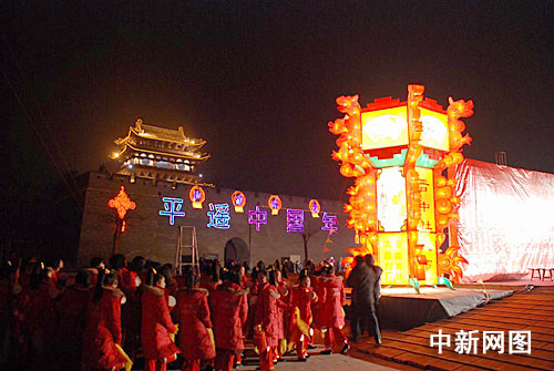 節日里的平遙古城流光溢彩,燈彩迷人,各色燈組為當地居民和中外游客帶來了強烈的視覺沖擊和心靈震撼。裴旭亮 攝
