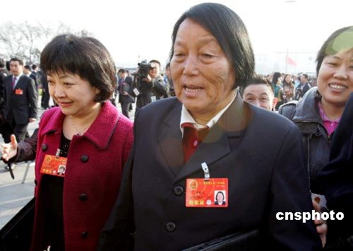 三月五日,連任十一屆全國(guó)人大代表、被譽(yù)為世界上資格最老的“議員”申紀(jì)蘭,再次來(lái)到北京人民大會(huì)堂,出席十一屆全國(guó)人大一次會(huì)議開(kāi)幕會(huì),繼續(xù)創(chuàng)造政壇“神話”。中新社發(fā) 潘索菲 攝