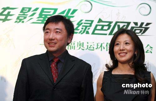 4月19日晚,由中華環境保護基金會主辦的“車影星光·綠色風尚”祝福奧運環保公益酒會在北京舉行,馬艷紅、張山、楊凌、楊揚等奧運冠軍和東風日產、力帆汽車等汽車企業領袖等參加酒會。酒會現場拍賣了奧運冠軍們捐贈的珍貴藏品和汽車企業捐贈的汽車,并將拍賣所得善款全部捐給中華環境保護基金會,表達了體育界、汽車界對環境保護的支持、對綠色奧運的期盼。圖為奧運冠軍楊凌、楊揚參加酒會。作者: 盛佳鵬