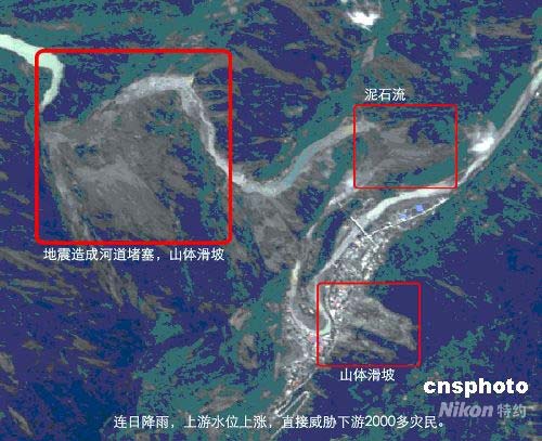 圖:高分辨率衛(wèi)星遙感影像監(jiān)測汶川地震