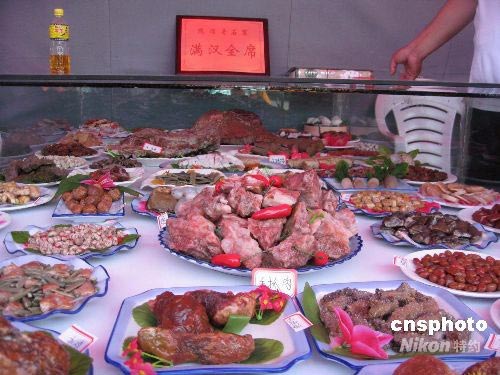 6月18日,由新疆哈密收藏者展出的瑪瑙奇石宴---“滿漢全席”吸引了大批參觀者,栩栩如生的“美味”讓人垂涎欲滴。當日,中國(烏魯木齊)首屆觀賞石、玉石精品博覽會在新疆國際博覽中心開幕。中新社發 緱燁 攝