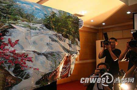 陜西省政府新聞辦29日上午在西安舉行新聞發布會通報“華南虎照片事件”調查處理情況。圖為陜西警方出示"華南虎"虎照造假有關證物