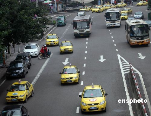 十一月五日,在重慶市菜園壩火車站附近的的士候車站,停靠著不少出租車等待市民乘坐。三日清晨,重慶主城部分出租車因受阻不能正常營運(yùn),給當(dāng)?shù)厝罕姵鲂性斐刹恍±щy。當(dāng)?shù)卣谌兆龀鼍o急部署,采取多項(xiàng)有力措施,積極解決出租車停運(yùn)事件。目前,重慶主城區(qū)八千余輛出租車已全面恢復(fù)營運(yùn)。
