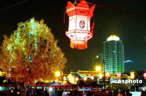 2月6日,“2009蘇州元宵燈會”在蘇州古運河畔的古胥門廣場閃亮登場,現場舉行的賞花燈、猜燈謎等民俗表演活動,吸引了許多市民和中外游客。中新社發 王建中 攝