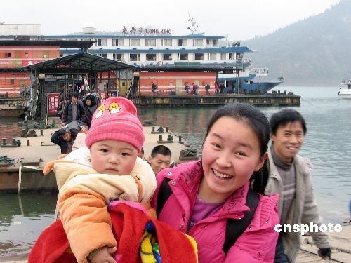 2月19日下午,龍興號輪滿載旅客抵達湖北宜昌港大公橋,當天進出三峽的旅客達到10000人次,三峽春運順利結束。有50多萬人車船并濟過三峽,形成庫區175米試驗性蓄水后的首個春運高峰。中新社發 韓玉洪 攝