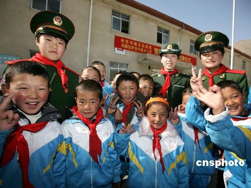 3月21日,武警西藏總隊(duì)醫(yī)院官兵與西藏拉薩奪底鄉(xiāng)中心小學(xué)開展了警民共建捐資助學(xué)活動,該醫(yī)院官兵共向奪底鄉(xiāng)中心小學(xué)捐資2萬元現(xiàn)金,贈送價值2萬余元的學(xué)習(xí)電腦。中新社發(fā) 錢檬 攝