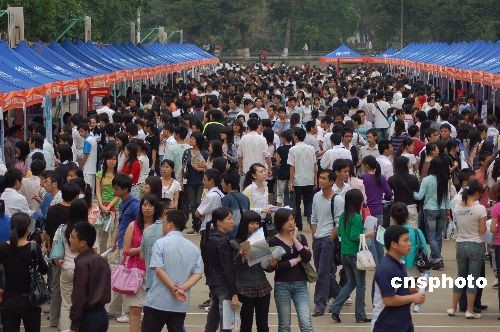 3月24日,廣西舉行促進大學畢業生就業公共服務系列活動啟動儀式暨廣西民族大學專場招聘會。中國廣西人才市場將招聘會設在了大學校園,約5000名即將畢業的大學生參加招聘會。據悉,2009年在廣西畢業的大學生預計達13萬人,就業壓力空前。為此,廣西人事廳將采取多種措施,在廣西各大學進行專場招聘和一系列就業公共服務活動,零距離為畢業生提供服務。中新社發 劉萬強 攝