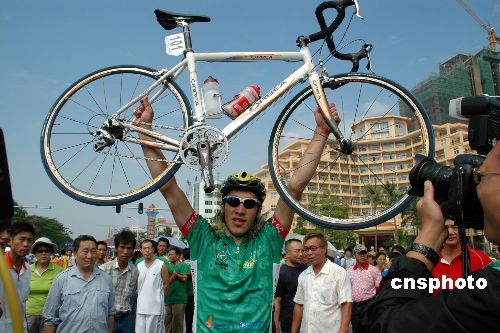 十一月十日,“海馬汽車”二00七環海南島國際公路自行車賽結束了所有的比賽,波蘭隊車手羅伯特·仁多士以二十六小時四十分四十八秒的總成績獲得個人總成績冠軍,他還獲得了第七賽段五指山至三亞分賽段冠軍和沖刺王。日本隊車手岡崎和也以二十六小時四十一分二十一秒的成績獲得亞洲最佳。俄羅斯隊車手米海勒·安德諾夫穿上了象征爬山王的圓點衫。波蘭隊還獲得了本屆賽事的團體冠軍,成為本屆比賽的最大贏家。中新社發 尹海明 攝