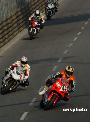 第五十四屆澳門格蘭披治大賽車十一月十五日在澳門拉開序幕,來自三十三個國家和地區的二百八十名選手參加包括第四十一屆澳門格蘭披治電單車大賽、保利達澳門格蘭披治三級方程式大賽和FIA三級方程式洲際杯賽的比賽。圖為第四十一屆澳門格蘭披治電單車大賽的排位賽正在激烈舉行。 中新社發 史利 攝