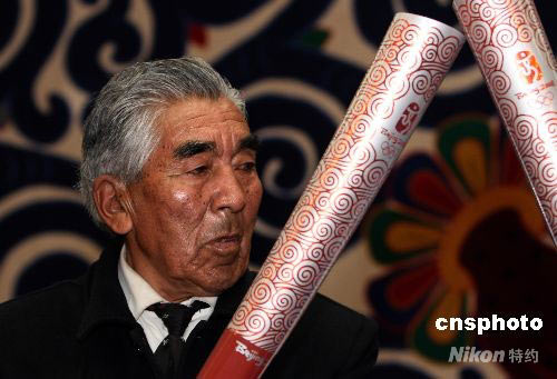 6月20日,北京奧運圣火接力活動在西藏拉薩舉行前夕,75歲的藏族“登山英雄”貢布成為首棒火炬手。1958年,時為解放軍戰(zhàn)士的貢布被借調到國家登山隊,開始與登山運動結下不解之緣。1960年5月25日,他與王富洲、屈銀華一起登上世界第一峰——珠穆朗瑪峰,實現人類首次從北坡登上珠峰的愿望,開創(chuàng)中國登山運動的新紀元。 中新社發(fā) 廖攀 攝