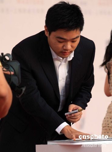 9月28日,2008年斯諾克上海大師賽揭幕,中國斯諾克領軍人物之一的丁俊暉低調面對賽事,沉穩地留下“明星手印”。將于29日開打的本次大賽,共云集世界排名前16的斯諾克高手、16位資格賽選手,以及7位中國外卡選手同場競技。中新社發 潘索菲 攝
