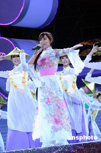 十月二十八日晚,第九屆南寧國際民歌節暨第四屆中國—東盟博覽會開幕式晚會在廣西南寧舉行。東南亞性感“天后”范菲蓉演唱節奏明快的越南歌曲《難忘的黑馬》,全場歌迷為之雀躍。中新社發 曾德軍 攝