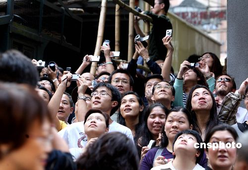 耗資十八億港元的美國好萊塢巨片《蝙蝠俠黑夜之神》十一月九日在香港中環(huán)電梯拍攝取景,男主角基斯頓比爾在拍攝中卸下太陽鏡露出真容,旁邊數(shù)百群眾演員配合演出,如人潮般的觀眾被阻隔在天橋下翹首觀看。該片一連七天在香港取景,除地面街景外,更每日派出兩架直升機在港島上空拍攝建筑及維港夜景風(fēng)貌。中新社發(fā) 王麗南 攝
